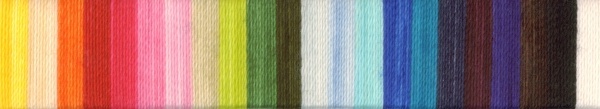 Variegated colours: EQ : Golden yellow, orange, red, purple, blue, green to golden again. EK : Dark bottle green shading through limes to yellow. EB : Dark chocolate and tabacco browns, through rust and grey-brown. ER : Damask pink, chestnut to mid-brown. EZ : Muted turquoise through to deep sea green. ES : Grey blues from dark to light. EJ : Blush pink to taupe and oatmeal. EN : Light tan, oatmeal and biscuit. EU : Yellow, Orange, Red EG : Lilac, Dark Purple, Deep Purpley-Brown EH : Sky Blue, Gold, Brown EL : Royal Blue, Deep Purple, Dark Blue-Purple EM : Red to Dark Purpley-Red EX : Purple-blue to gray to orange red and red pink EA : Blue, violet, green, yellow-green EC : Charcoal, many tones of grays, to almost white Solid colours: RR5 : Mid warm leaf green RR6 : Dark bottle green RR7 : Mid lime green RR8 : Lemon/lime LL4: Deep raspberry |