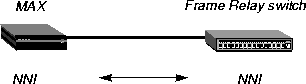 An NNI interface connection allows the MAX to appear as a Frame Relay network interface based on the NNI specifications. It performs both DTE and DCE link management, and allows two separate Frame Relay networks to connect via a common protocol. See Configuring an NNI interface.