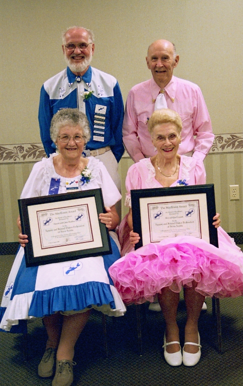 SRDFNS President, Bob Ruohonemi, chaired the Awards Ceremony at Festival 2003 in Truro. The Award Committee Chaircouple, Laurence & Alice Harrison, produced the certificates andread the criteria for both the Longevity and Service Awards. Committee members Dan &Janette Burke arranged the seating and did the ushering. Murray & Jean Berry, Fundy RegionRepresentatives, presented the awards to dancers and club representatives. Alex Ritchie was theofficial photographer and producer of the Mayflower Award Certificates.