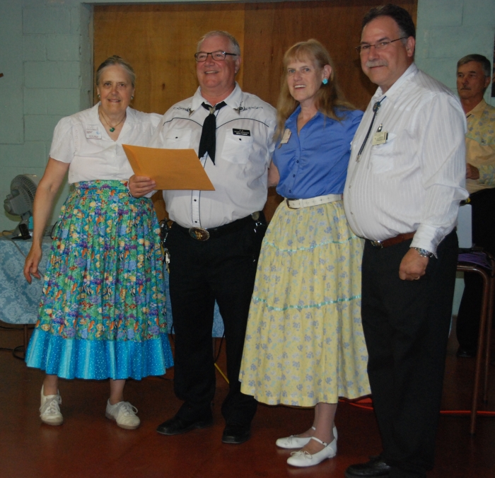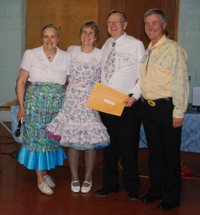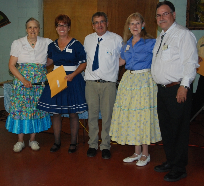 The 2013 Alguire Memorial Callers School was held at the Elm River Park Campground in Glenholme, with a class of eight enrolled. Nova Scotia callers Dottie Welch and Kerry Fletcher were assisted this year by CALLERLAB accredited caller coach Betsy Gotta from new Jersey. The currriculum covered the full CALLERLAB recommended School Curriculum, with training levels customized for both new and experienced callers. A significant bonus this year was a three day mini-school for three round dance cuers presented by Betsy's husband Roy, who is currently the Vice Chairman of ROUNDALAB.