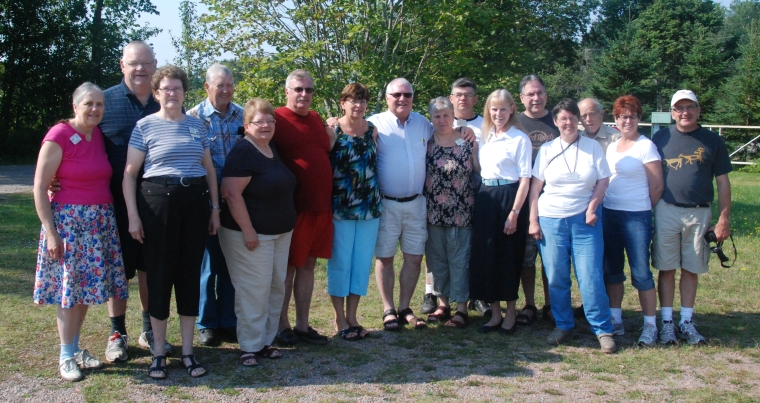 The Class of 2013 with spouses. From left: Teacher Dottie Welch, Ralph and Barb MacDonald, Jerry and Faye Germon, Roger Sherren, Deborah Northrup, Réal Caron, Wilma and Laurie Illsley, Teachers Betsy Gotta and Kerry Fletcher, Carol and Don Scott, Christine and Martin Belanger. Missing round dancers: Teacher Roy Gotta, students Barry and Claire Walker, Chris and Ruby Ayres, and Lionel and Janet Crowe