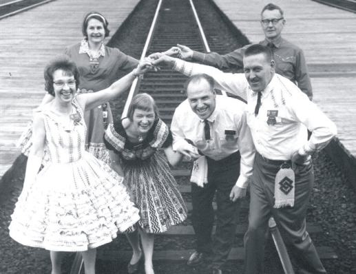 The Train began as a twinkle in the eye of an Ottawa Square Dance club, the Stetson Strutters. In 1966 manythings were being planned for the next year, and somebody had the idea of going coast-to-coast with "21 cars carrying500 square dancers, stopping at Montreal, Ottawa, Saskatoon, Winnipeg, Vancouver and Victoria, with dancing andcivic celebrations all along the way." (Quote from ad for Train in January '67 Sets in Order.)