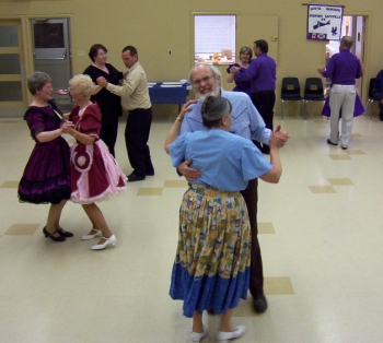 Modern Square and Round Dancing is enjoyed throughout Canada, USA and 50 countries worldwide. It provides Fun, Fitness and Good times in a healthy environment with new music from Golden Oldies to Elvis to today's Hot New Country! Modern Square Dancing is an activity where couples can do something together and it helps reduce stress and tension. It is recommended by the Heart and Stroke foundation as a viable form of exercise that can reduce your risk of Heart and Stroke disease. Modern square dancing is reported to improve cholesterol profiles, strengthen bones, and prevent or slow osteoporosis. New dancers usually wear casual clothing and soft soled shoes. Prairie skirts are popular with the ladies. Men are encouraged to wear long sleeves. Singles are also welcome as they can pair up to form a couple.