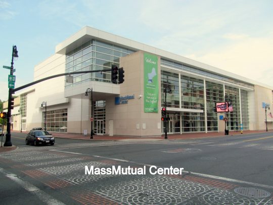 The US National Square and Round Dance Convention in June was held in Springfield, Massachusetts - just about as close to Canada as these events ever come. A number of Maritimers were among the 4004 dancers enjoying themselves in downtown Springfield, including your Editor and his ever-busy wife, who had been seconded to organize the contra dance program for the Convention. The Contra Dance Hall, along with the DBD Plus, Advanced, and Challenge Halls, was located in the Springfield Sheraton and Marriott Hotels, across the street from each other but joined by a second-floor pedway. Meanwhile, the large halls - Mainstream, Plus, Rounds, and all the displays and shops - were located a short walk away at the MassMutual Center (Springfield's version of the Halifax World Trade Centre/Scotiabank Centre complex).