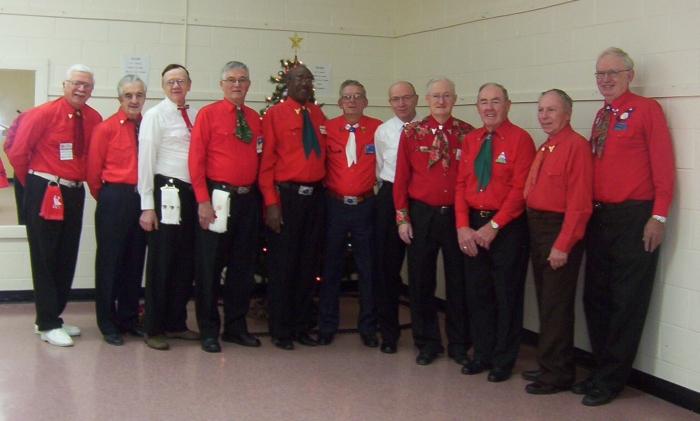 Three squares in full Christmas dress gathered at Bloomfield Centre on the morning of December 22 to dance in front of a CTV camera crew. Caller Dottie Welch put us through our paces, with a special teaching tip for good-natured host Cyril Lunney. Short introductory sessions were taped featuring four groups of six dancers. A "spokesperson" from each group was chosen to proclaim "Hi, I'm ----- and you're watching Morining Live on CTV!". The results were often hilarious, requiring one or more retakes. But all ended well, and the session aired the following morning to critical acclaim.