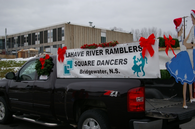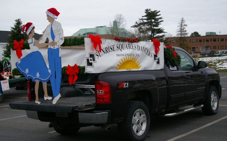 The following photos show the South Shore square dance clubs' entry (#30/53) for the Christmas Parade sponsored by South Shore in Motion held in Bridgewater, November 27, 2011. This is the first year square dancing was represented in the Christmas Parade. Next year's entry is already in the works.