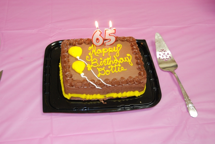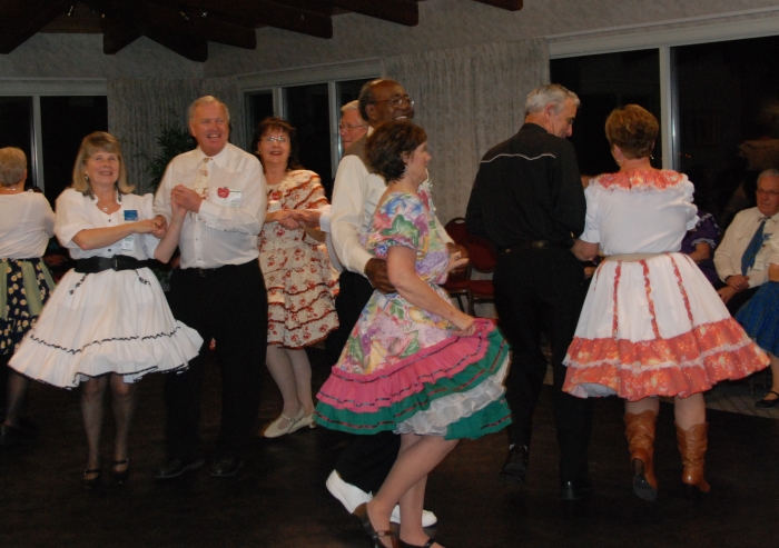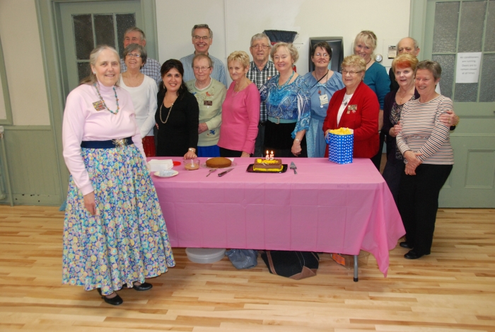 On November 28 club caller Dottie Welch was treated to a surprise birthday party at the regular Thursday night dance, celebrating one of life's milestone birthdays (see below) as well as 30 years as a square dance caller and 40 years as a dancer. Where does the time go?