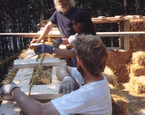 It's been several years now since I first heard about straw bale construction and since then it has become central to my life. My daughter and I have just spent the winter in a Nebraska style straw bale home which we built with many friends and some assistance from the federal and provincial governments.