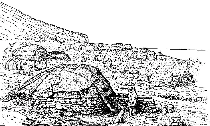 of these summer houses was covered with walrus skins held in place by