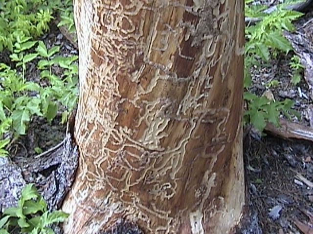 Traces of Woodboring Beetles feeding on