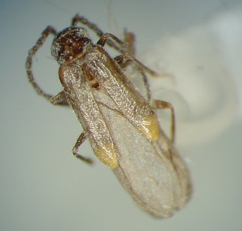 M. parvulus LeConte. 1.0-1.5 mm. Canescent, head piceous; antennae beyond antennomere 3 becoming piceous; apical abdominal segments piceous.