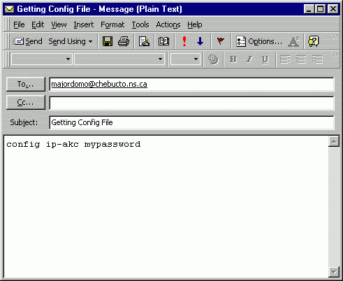 The administrative password allows you to make changes to the configuration file and other administrative tasks on the list. The approval password is used to allow posting to a moderated list. This would be used to allow you or someone you designate to post to a moderated list. A moderated list is one where the moderator previews each and every email sent to the list before being sent to the list members. The thing that differentiates a regular post, which must be moderated, and one that has been reviewed by the moderator is the approval password. Through the config file you can restrict the commands that are available to users. The commands you can restrict are all appended with "_access". For instance, the "who_access" key identifies who will have access to get a list of the list members (i.e. Use the "who" command). In most cases this should be either "closed" or "list". Ideally, you never want to leave it "open" as it provides spammers with a list of email addresses that are already market specific. Commands that can be restricted are get, index, info, intro, which, and who and they are found throughout the config file as command_access. The allowable values are open, closed, list. Open means give access to anyone, closed means give access to no one, and list means give access to the list members. I'll leave it up to you to decide which commands should be in which state but I'll make this one suggestion: who_access should be closed or list. This becomes more obvious if the members of the list get spammed. You should take care to protect the email addresses on your list from being used by spammers. List members have already been categorised by their membership in the list and can be used by spammers who are trying to focus their spam. If you find you are part of a busy email list you may choose to put yourself in digest mode. This means that instead of getting every post by each user as it happens the list server will send you an aggregate of emails based on time or size parameters. All the digest options begin digest_ and allow you to specify certain digest parameters such as digest size and/or frequency. Be careful what you select because if you set maxlines to 10 you may find that the digest gets created a little too often! The moderate option must be set to "yes" or "no" depending upon whether or not you wish to have each and every message reviewed before it makes it to the general populace of the list. If you set it to "yes" then you may choose to establish a moderator other than <listname>-owner which is the default. Put the email address of the moderator here and he/she will get each and every email before it is posted to the list. They will then have to use their moderator password to post the message. Another important value is the subscribe_policy option. This one small parameter can change the whole meaning of the list. If the subscribe_policy is set to open then anyone can subscribe to the list. This would allow you to build a newsletter subscription or other type of announcement list. If subscribe_policy is set to closed then you would most likely be creating a private discussion list. In the event that your list is of the open variety I would highly recommend you use the +confirm option. Setting it to open+confirm means that the user has to confirm that they subscribed to the list by replying to a message generated by Majordomo. This is a good idea to prevent Joe from subscribing Mary to a list that she would not like to be part of. Another important setting is the "Reply-To" setting. This one has been the focus of some controversy as explained by Chip Rosenthal due to the fact that it is somewhat destructive. This parameter can be set to either be the list name (ip-akc in my case) or $SENDER or nothing. Based on my testing on the CCN installation however, changing this value has no effect so I would simply leave it alone. Modifying the Configuration File