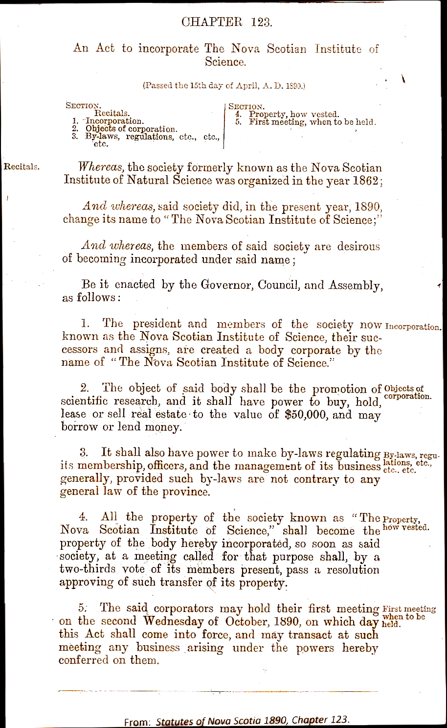 - publish a scholarly publication entitled: Proceedings of the Nova Scotian Institute of Science.